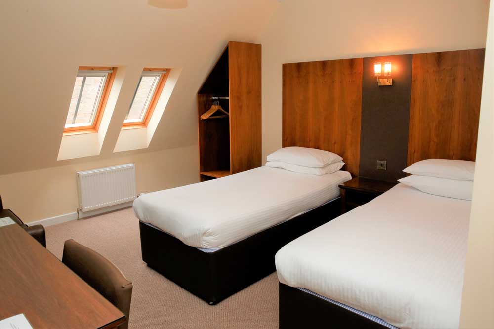 Offering two separate single beds, our Twin Rooms are well suited to friends travelling together, small groups, or colleagues on business trips. Each room includes Wi-Fi, tea and coffee-making facilities, and a private or ensuite bathroom. Comfortable and practical accommodation in a peaceful area of Inverness city centre.